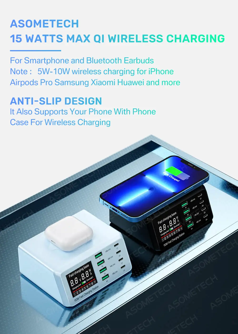 - > 110W adaptador de carregador USB estação de carregamento carregador sem fio PD USB C carregador de telefone rápido para iPhone 13 12 11 Xiaomi Huawei Samsung