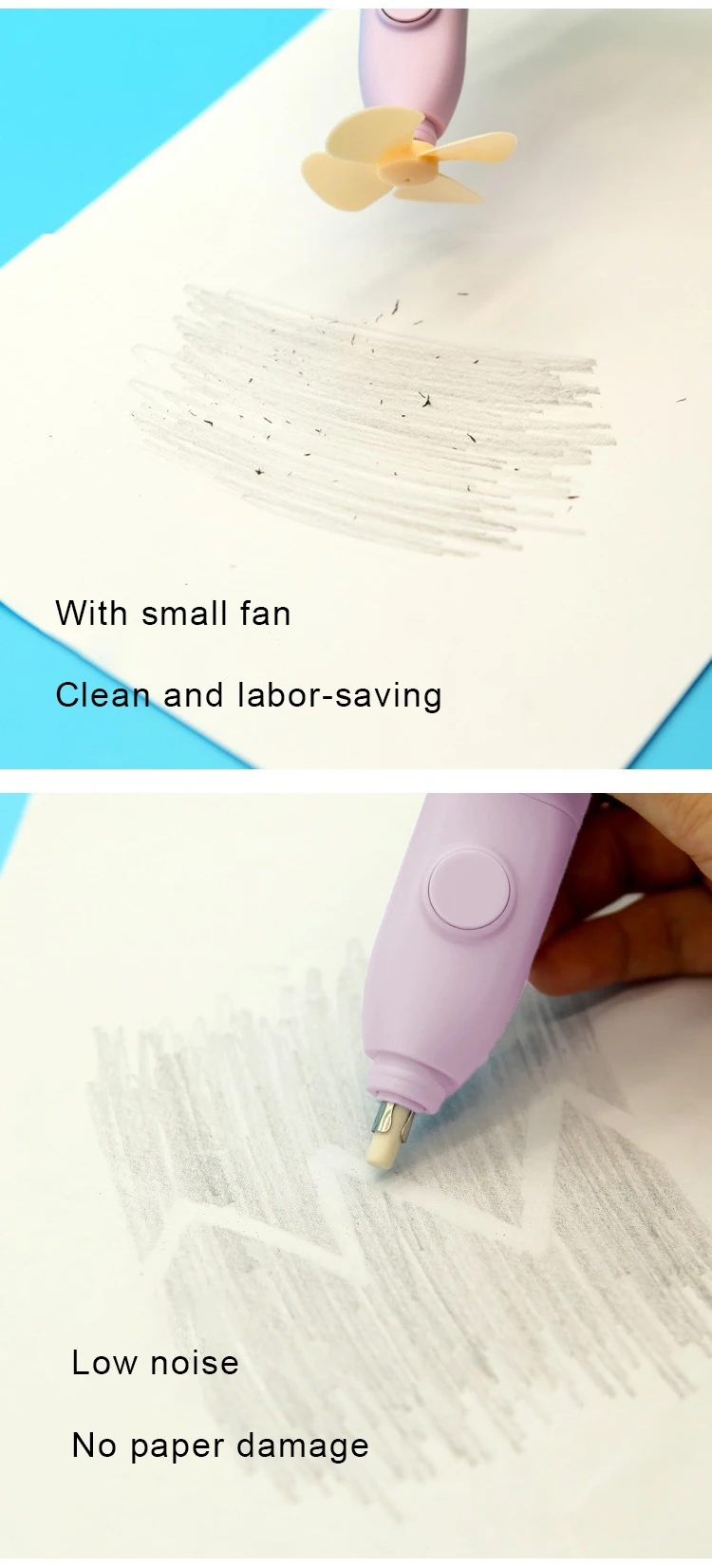 Apagador elétrico rosa para escritório escolar para desenho de esboços de escrita de desenho apagador elétrico movido a bateria para estudantes presentes de papelaria