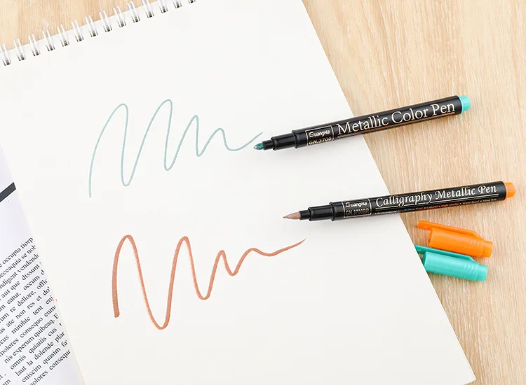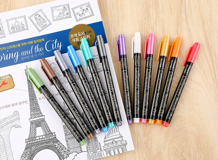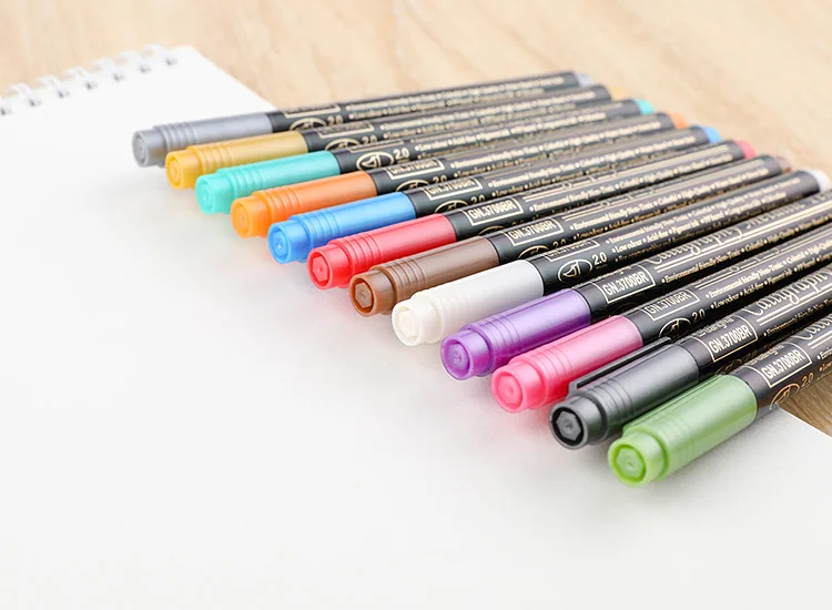 Conjunto de caneta marcador de pincel metálico 12/20 cores 2mm à base de água para cartão marrom preto madeira cerâmica vidro canetas de desenho material escolar
