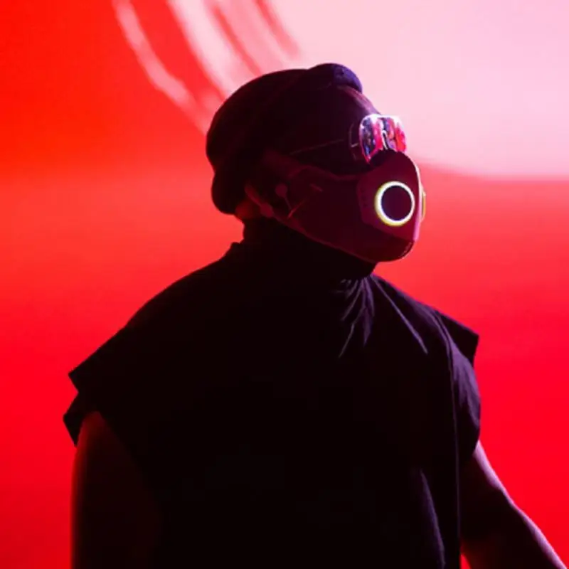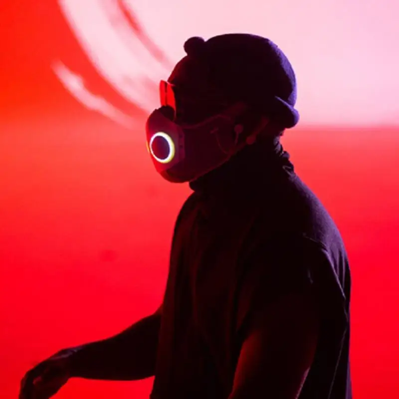 - > Máscara de Halloween de alta tecnologia Steampunk Válvula Dupla LED Máscara Luminosa Fone de Ouvido Compatível com Bluetooth Máscara Inteligente Áudio Vídeo Portátil