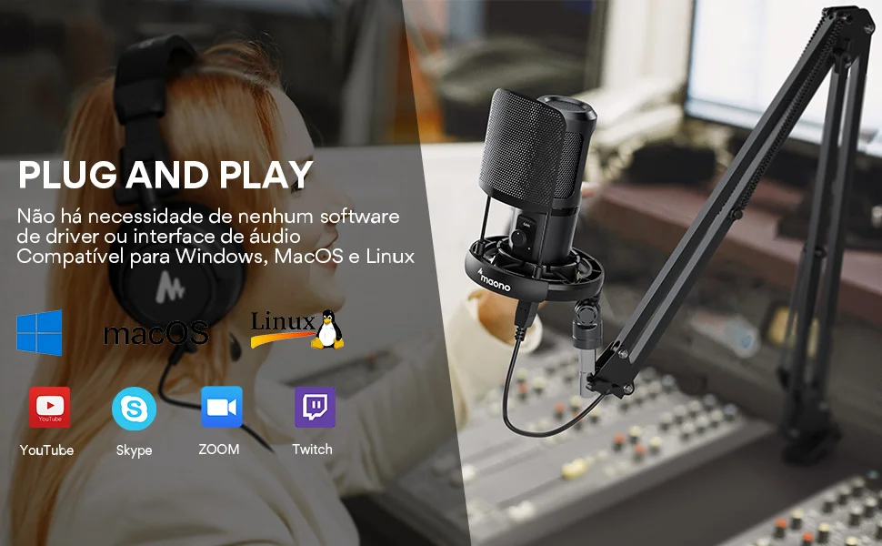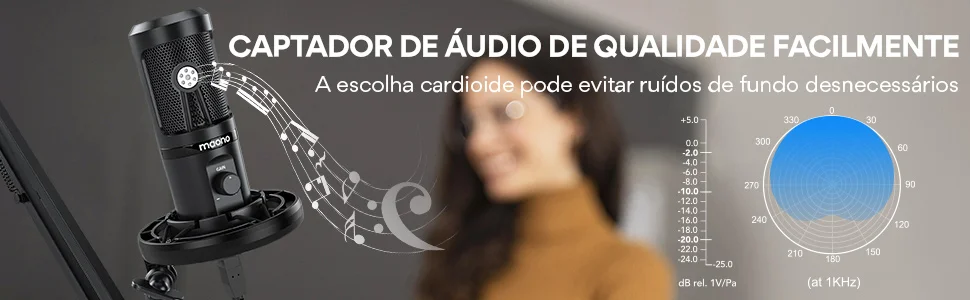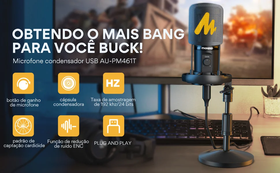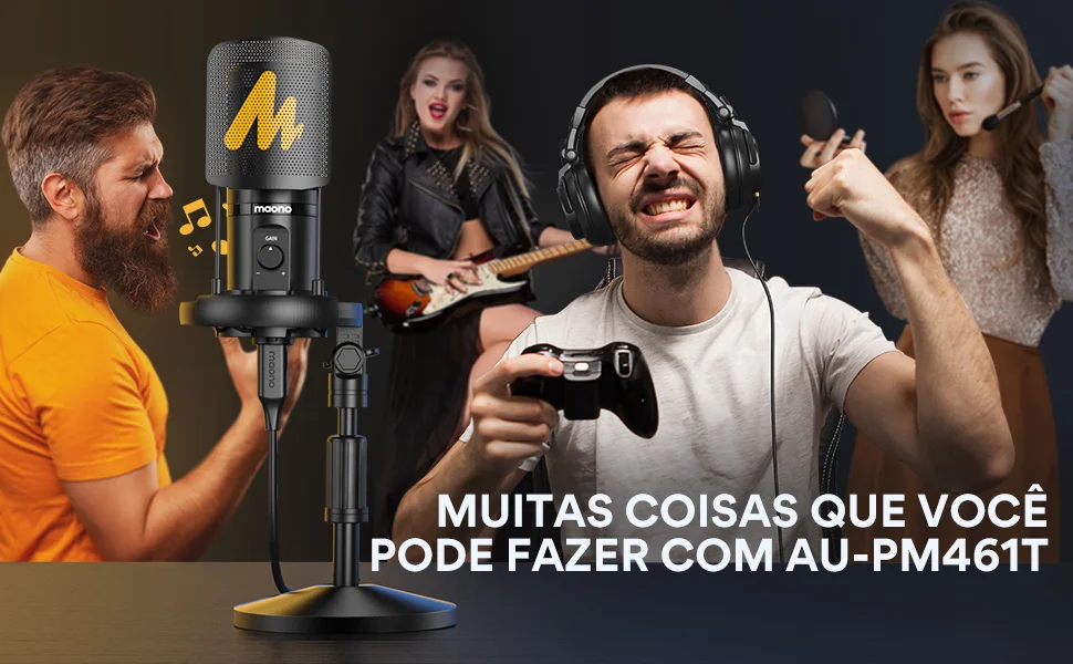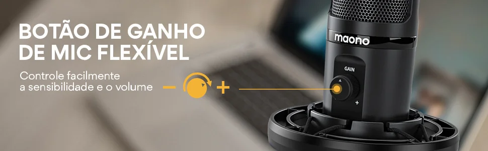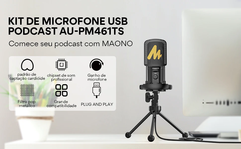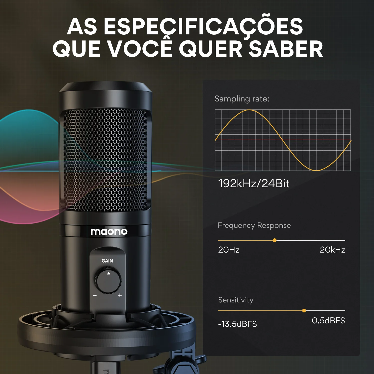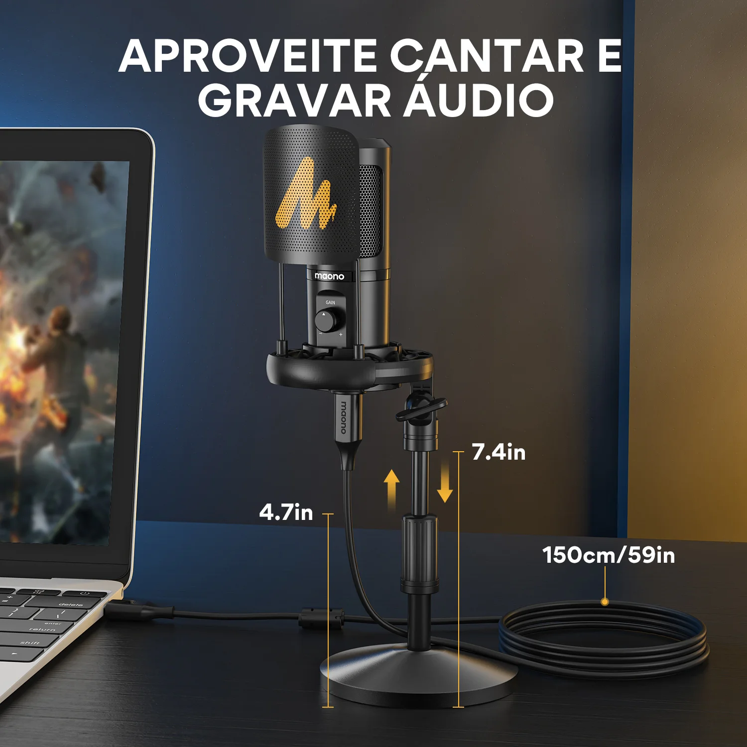 - > Microfone USB MAONO Condensador Profissional Microfone de Computador com Filtro PoP Ganho Montagem de Choque para Gravação de Jogos de Podcasting PM461
