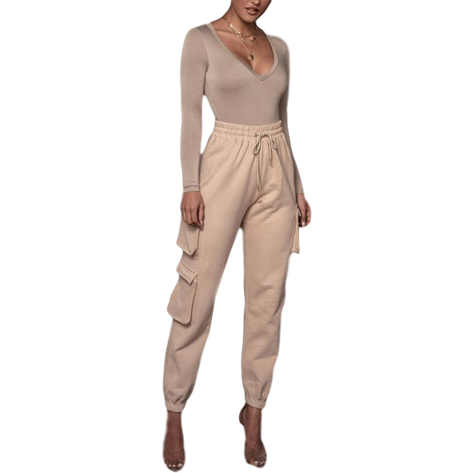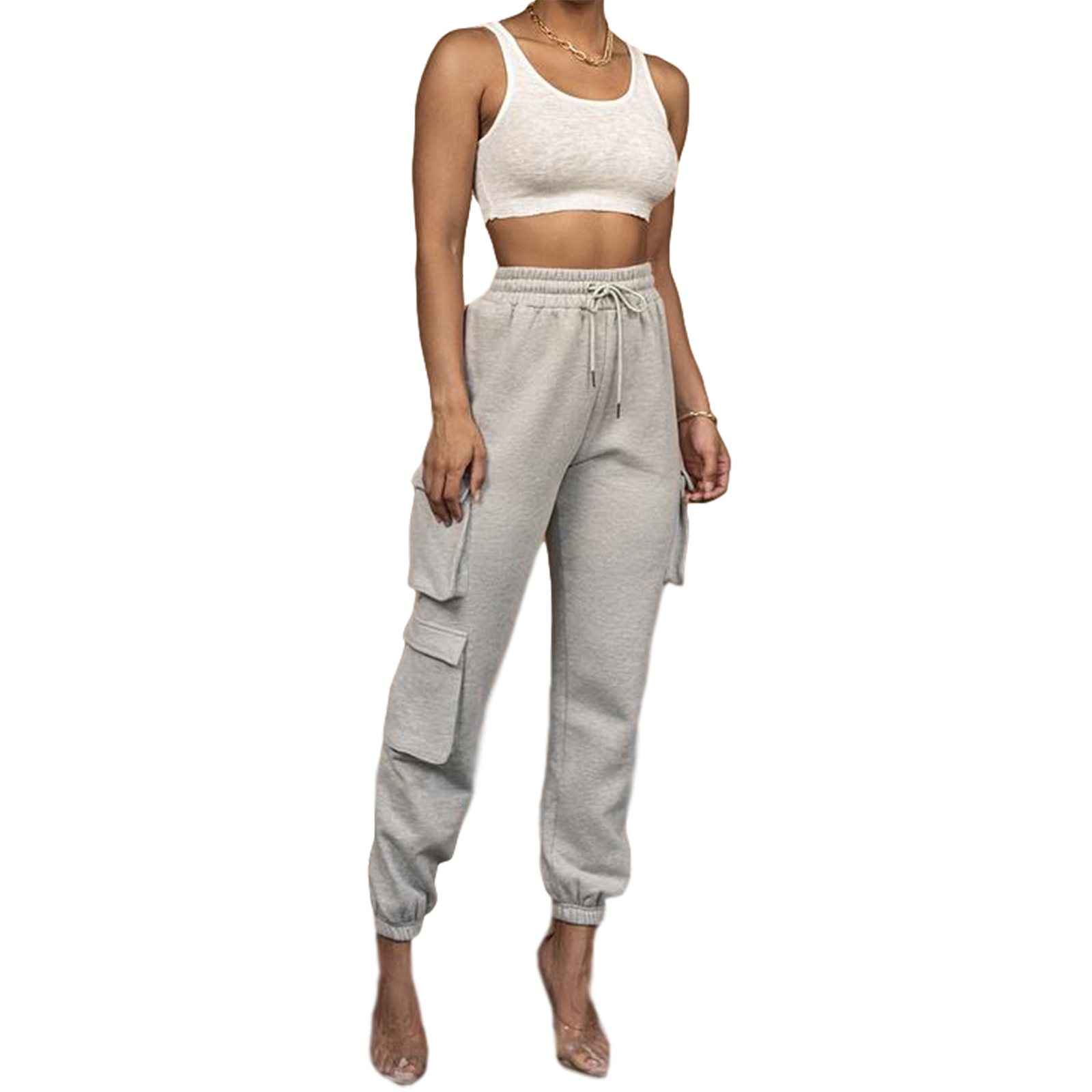 Nova Primavera Moletom Multi-bolsos Feminino Casual Alta Cintura Elástica Cordão Solto Calça Jogger Plus Size Calça Harajuku