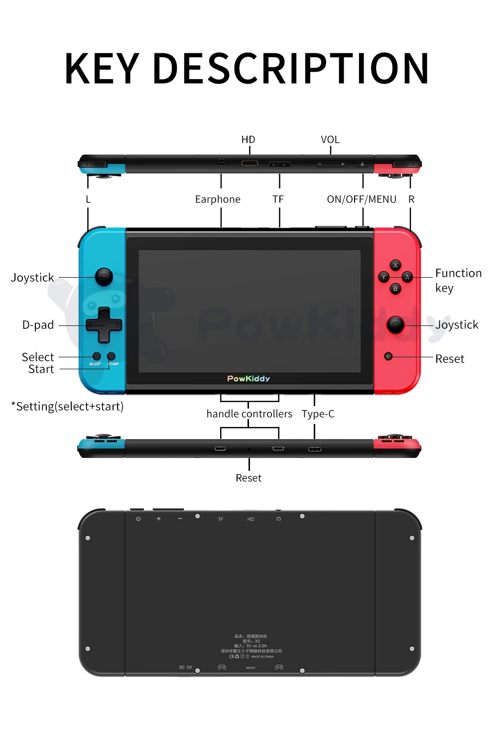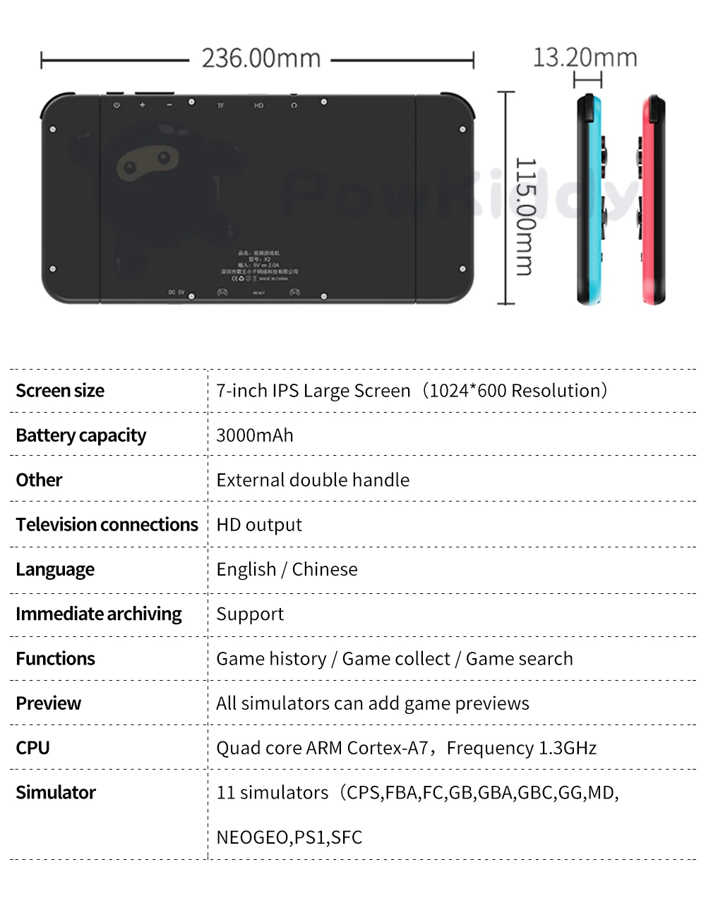 - > NOVO POWKIDDY X2 7 "IPS Screen Handheld Game Console Built-in 11 Simulador PS1 3D Game Retro Arcade Console Ultrafino 2500 Jogos