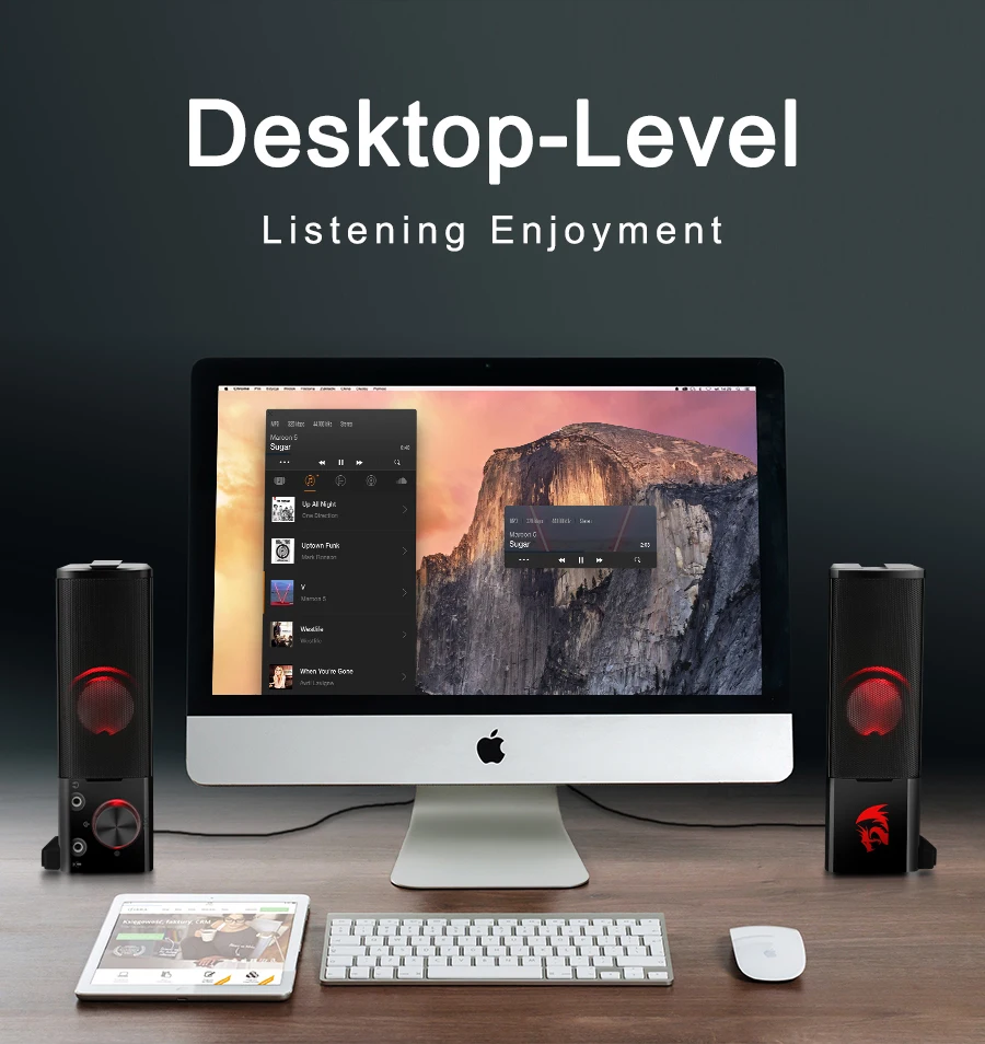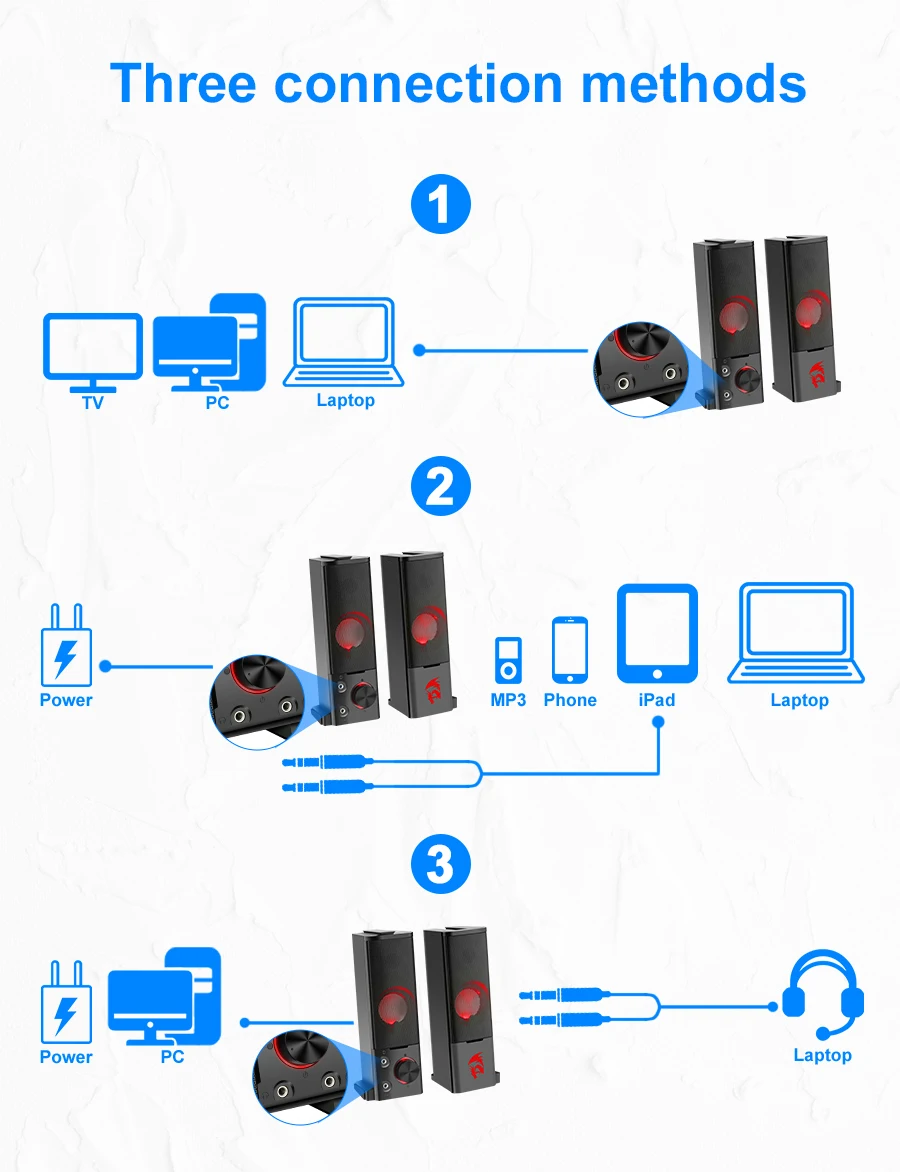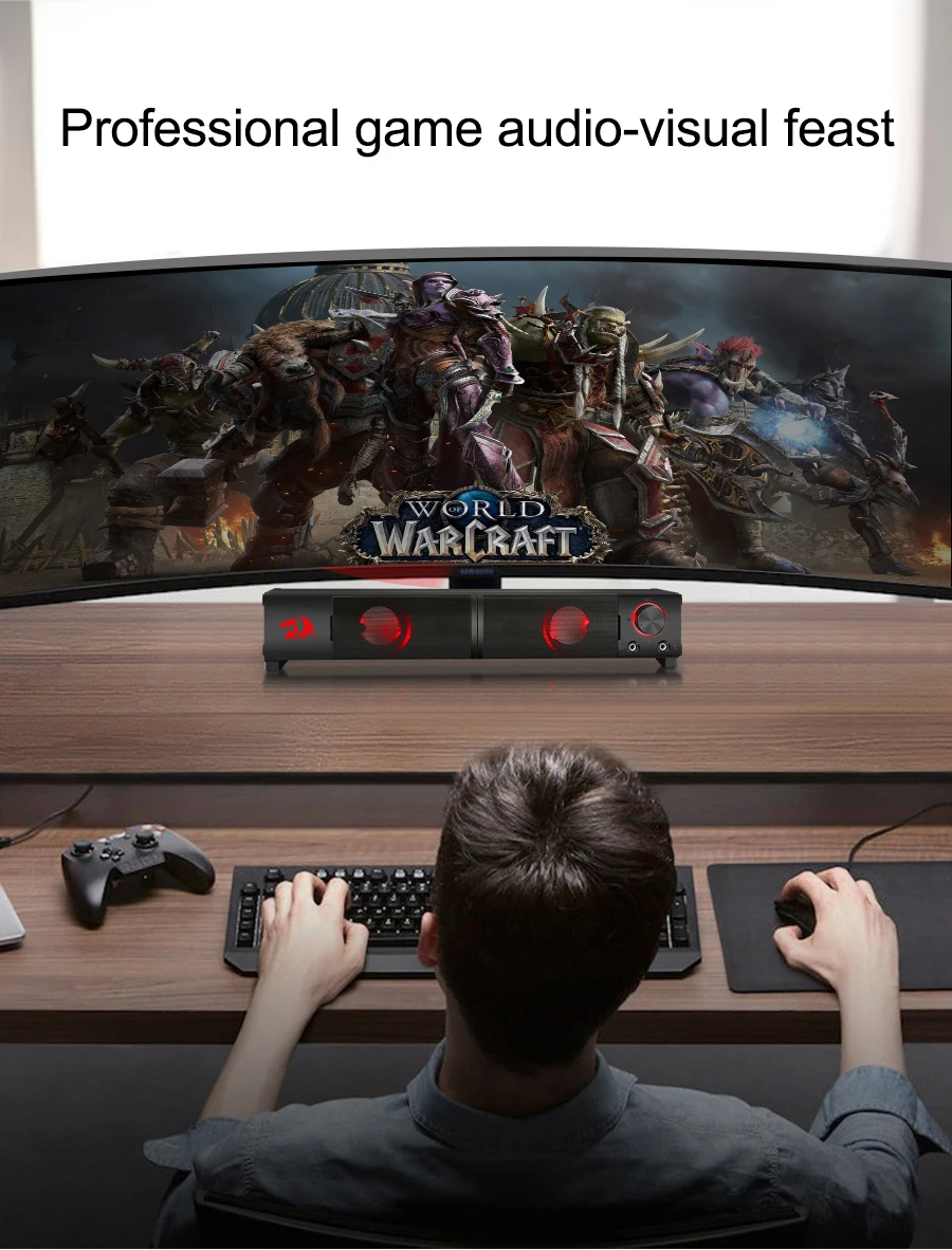 - > Redragon Orpheus GS550 aux 3.5mm estéreo surround música alto-falantes inteligentes coluna barra de som computador PC casa notebook TV alto-falantes
