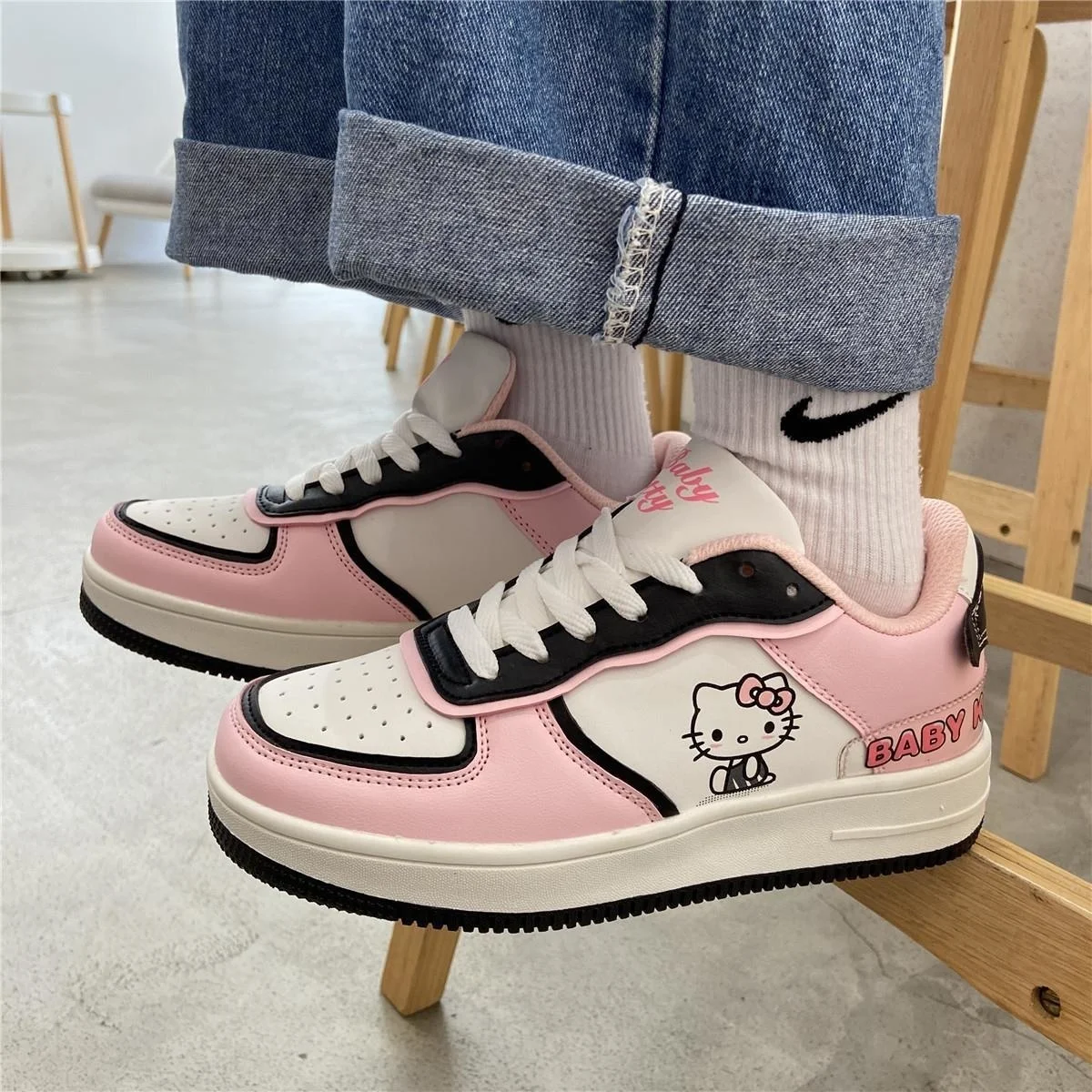 Sapatos de desenho animado Hello Kitty All-match leve respirável casuais sapatos femininos tênis esportivos bonitos sapatilhas rosa para menina