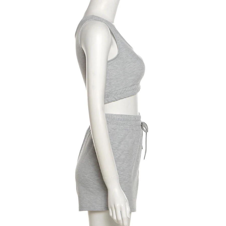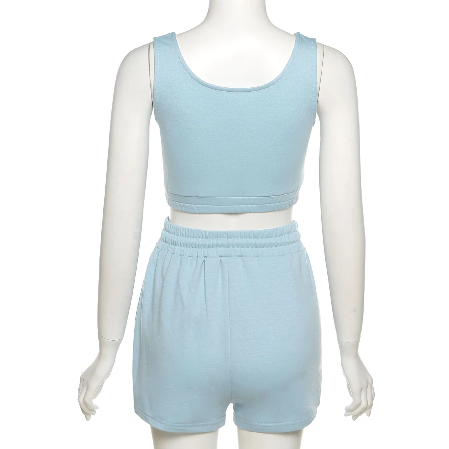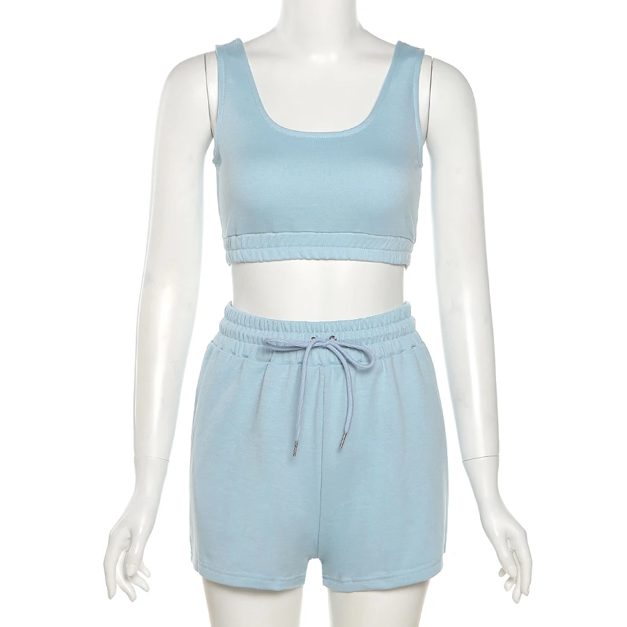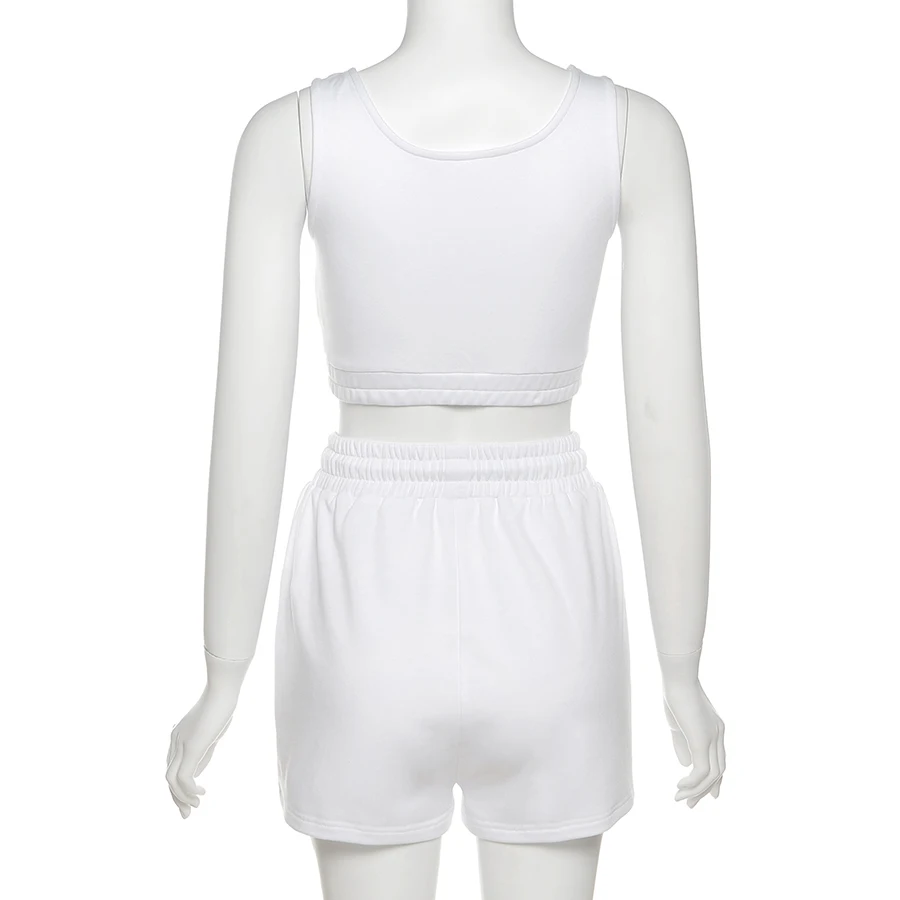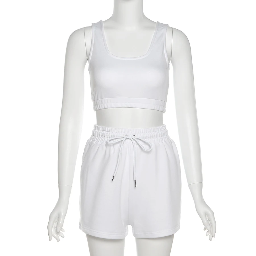 Sisterlinda Roupa Esportiva Casual Preto Branco Conjunto de 2 Peças Feminino Top Crop Shorts Motociclista Combinando Fato de Treino Feminino