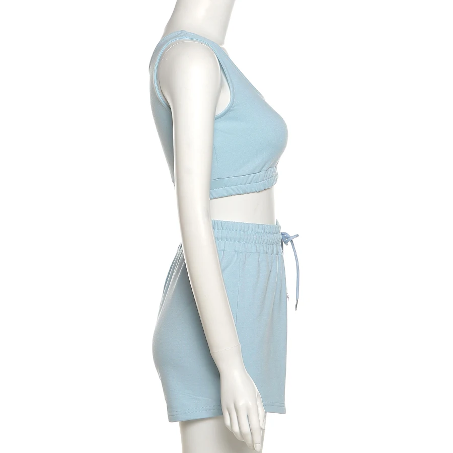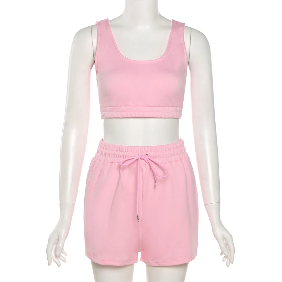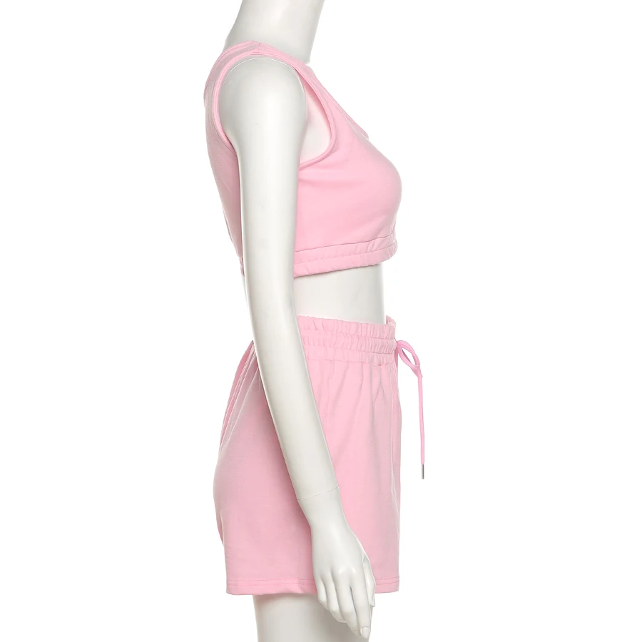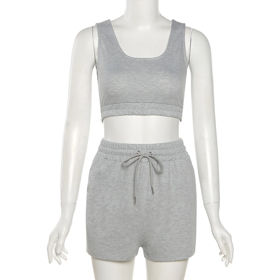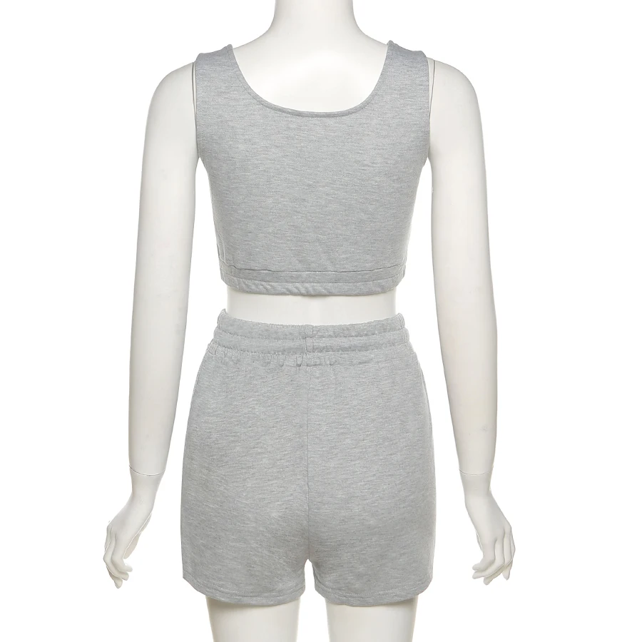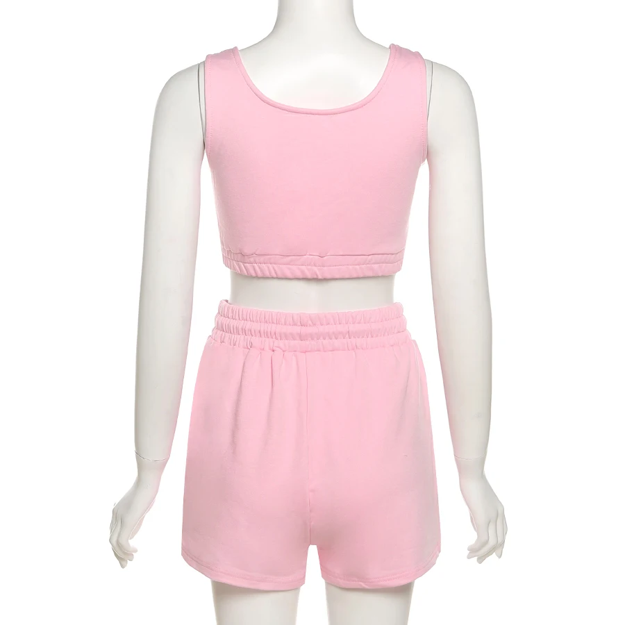 Sisterlinda Roupa Esportiva Casual Preto Branco Conjunto de 2 Peças Feminino Top Crop Shorts Motociclista Combinando Fato de Treino Feminino
