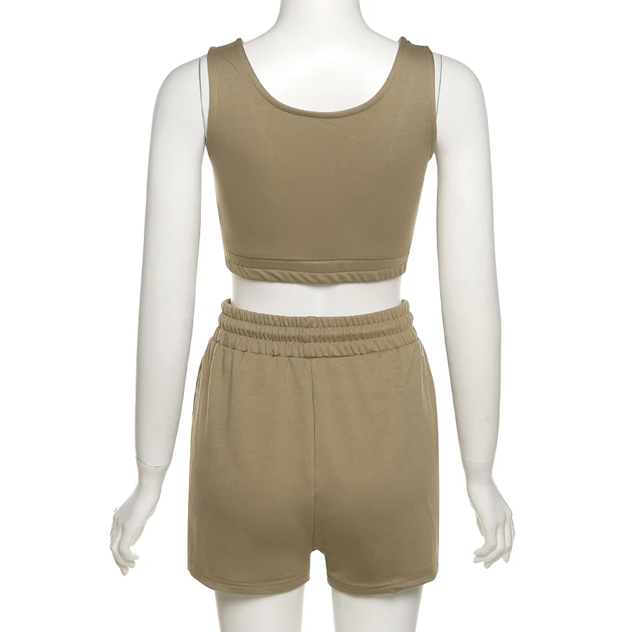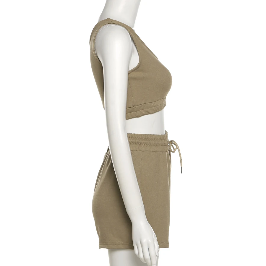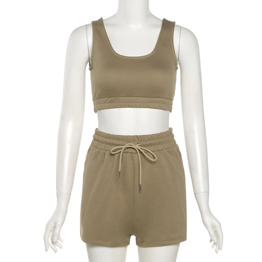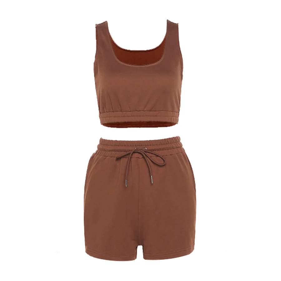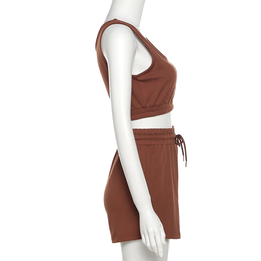 Sisterlinda Roupa Esportiva Casual Preto Branco Conjunto de 2 Peças Feminino Top Crop Shorts Motociclista Combinando Fato de Treino Feminino