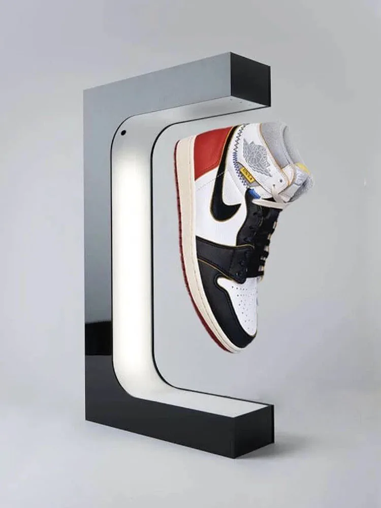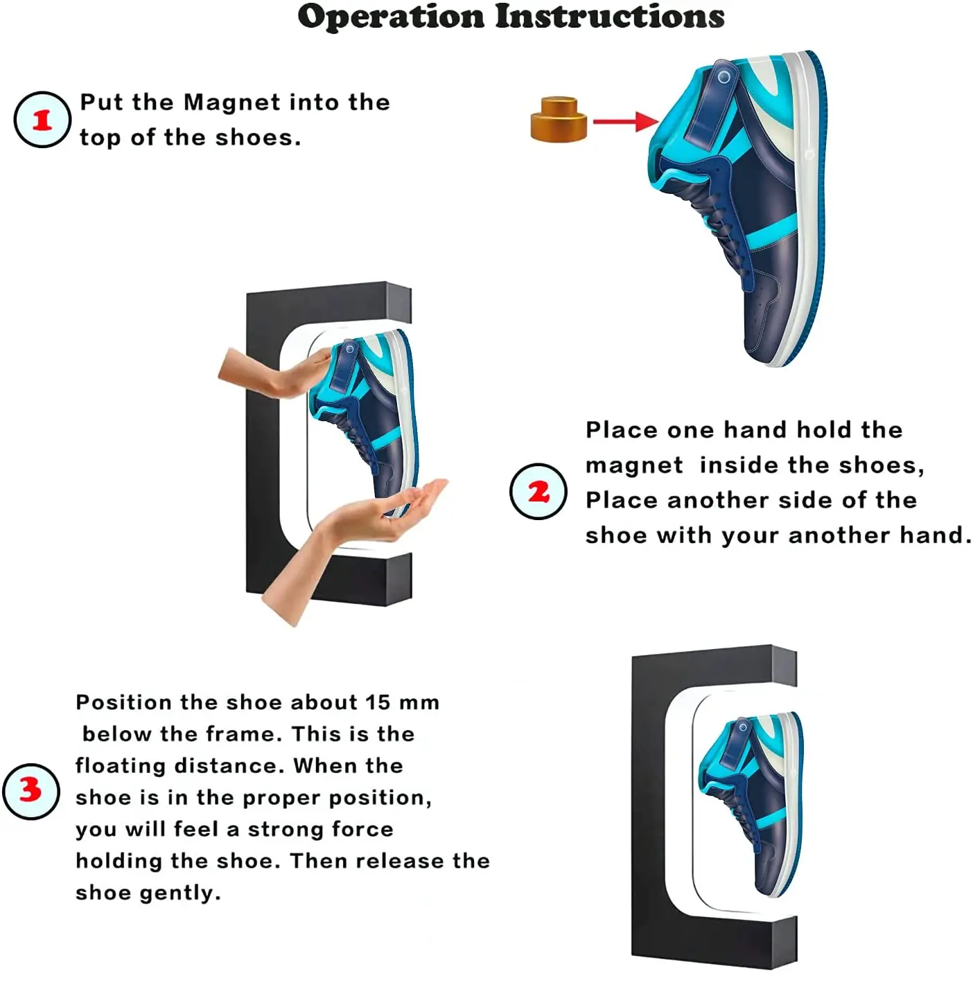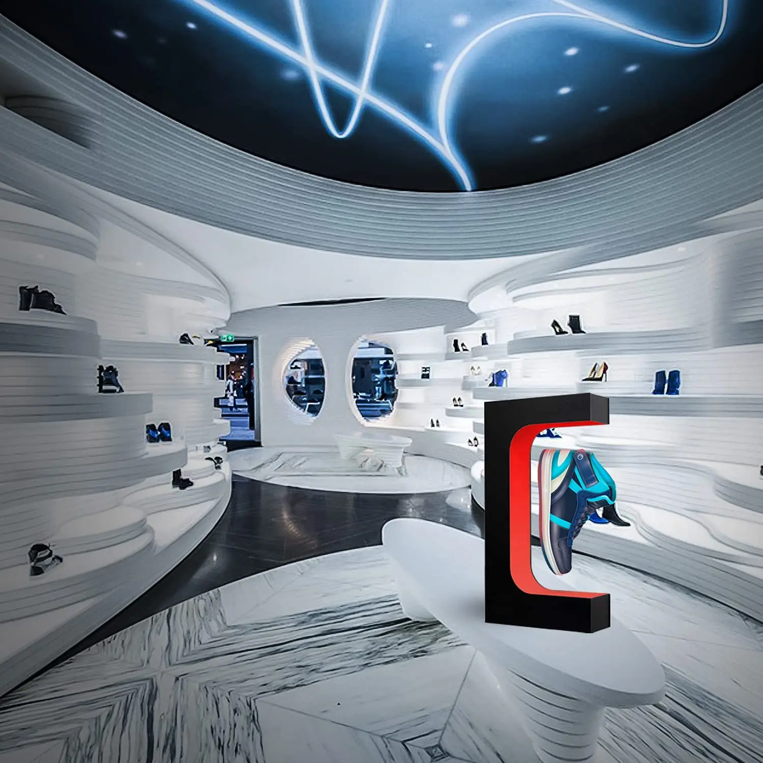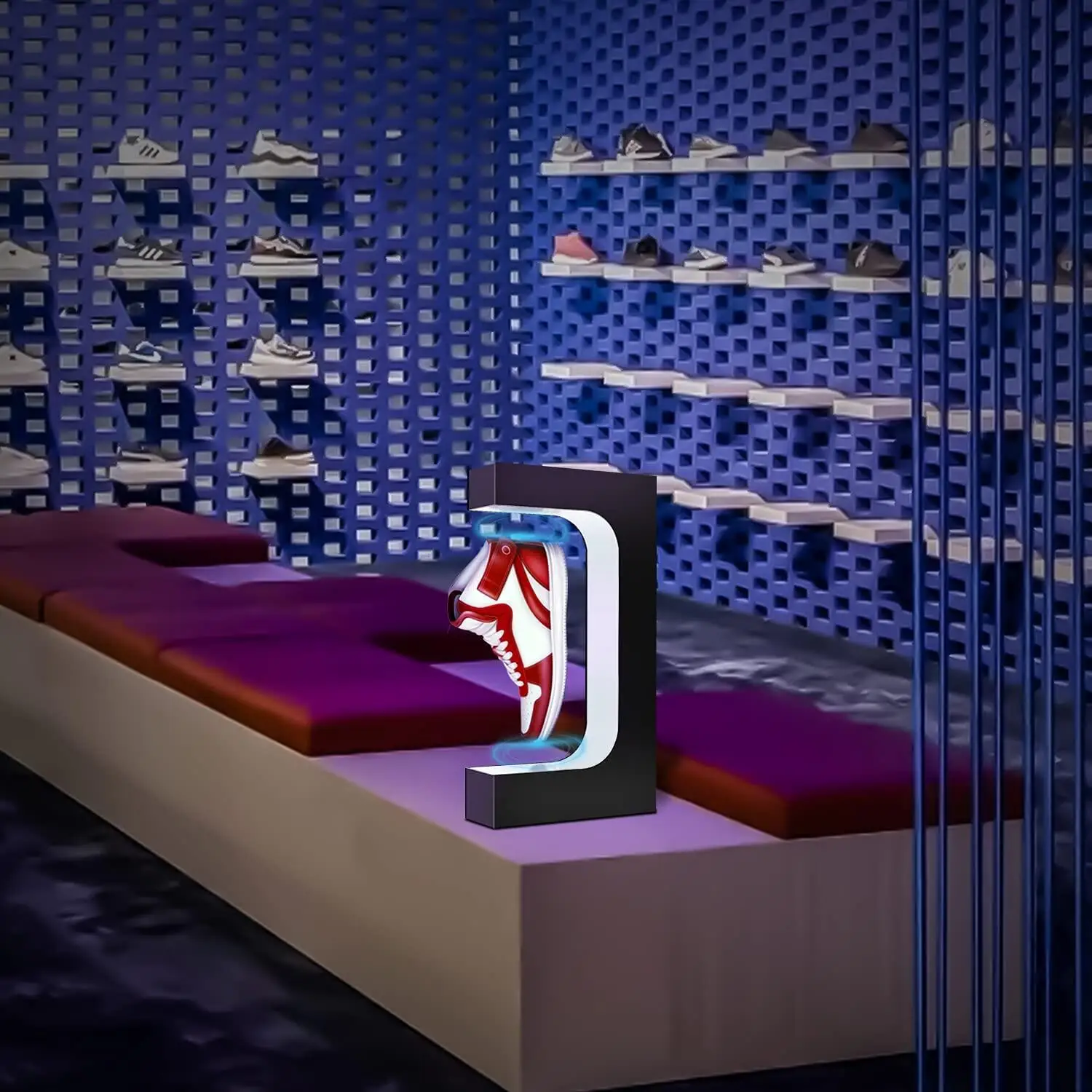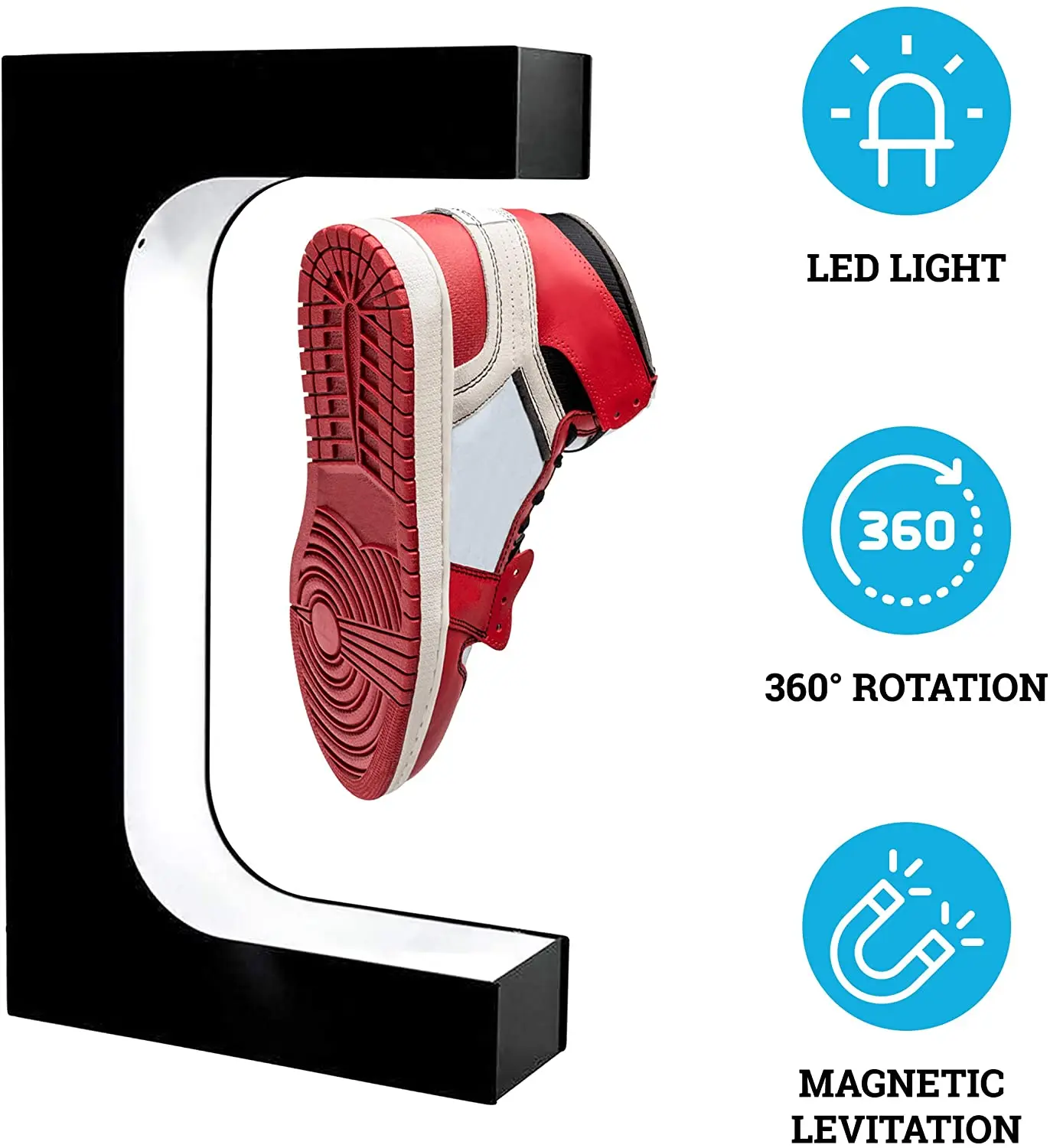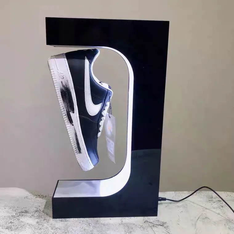 - > Suporte para sapatos com suspensão magnética com luz LED suporte levitante para exibição de publicidade exibição de sapatos giratórios flutuantes