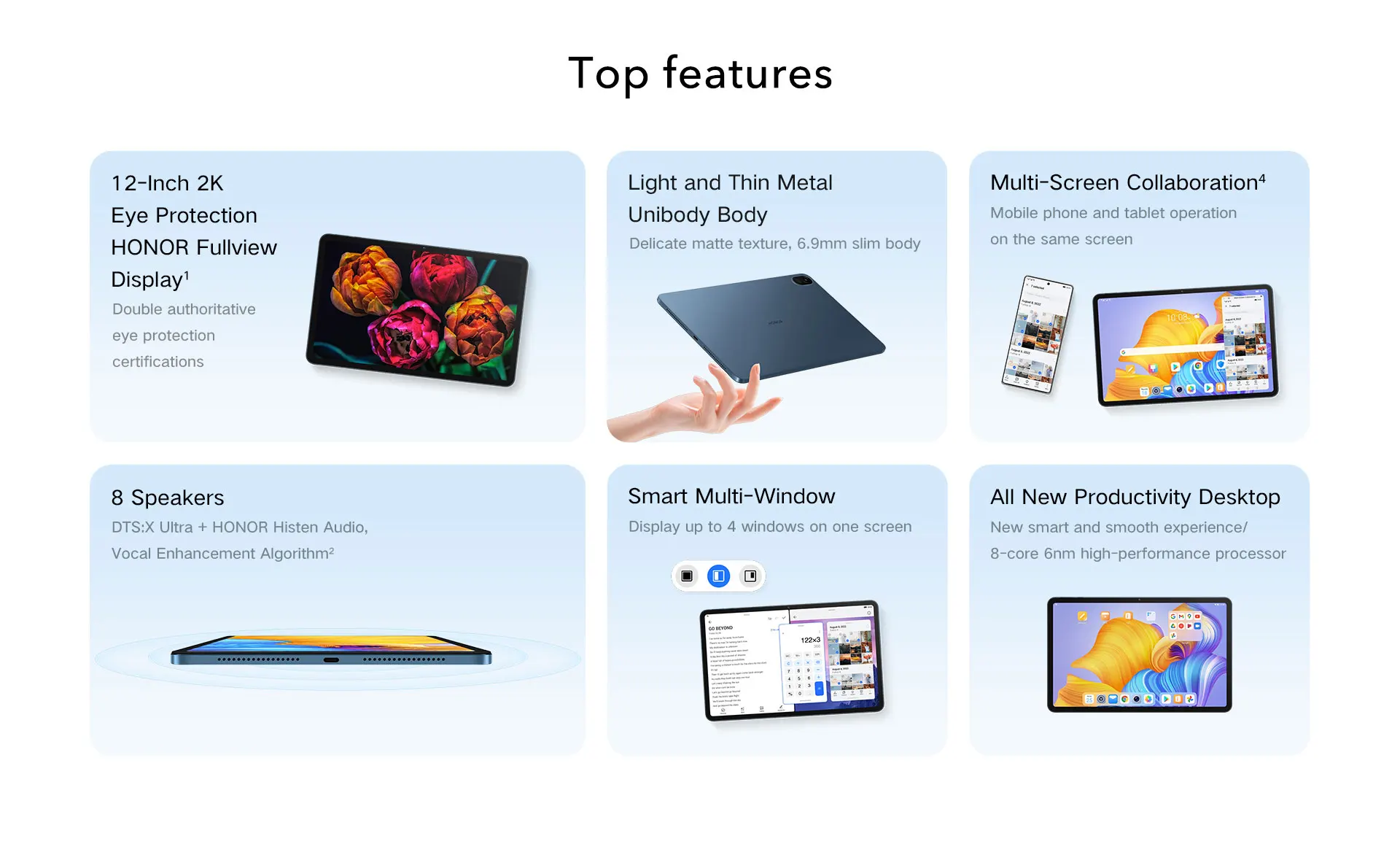 Versão global HONOR Pad 8 12 polegadas 2K tela de proteção ocular 128 GB Octa-core 8 alto-falantes 22,5 W tablet ultrafino de carregamento super